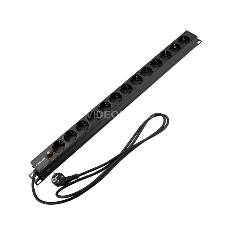 Описание Блок распределения питания для 19" шкафов, вертикальный, 13 розеток СЕЕ 7/4, 16A, фильтр, без выкл, алюм корп, шнур 2м, вилка СЕЕ 7/7 REXANT (04-0205-