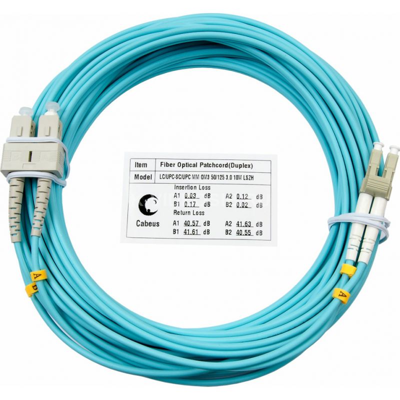 Cabeus FOP-50-LC-SC-10m Шнур оптический duplex LC-SC 50/125 mm OM3 10м LSZH