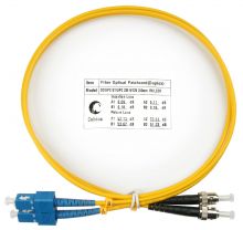 Переходной шнур (патч-корд) SC-ST 9/125 - это отрезок оптического кабеля c двумя волокнами (в буферном покрытии 3 мм) оконцованный с одной стороны оптическими коннекторами SC, с другой стороны коннекторами ST.