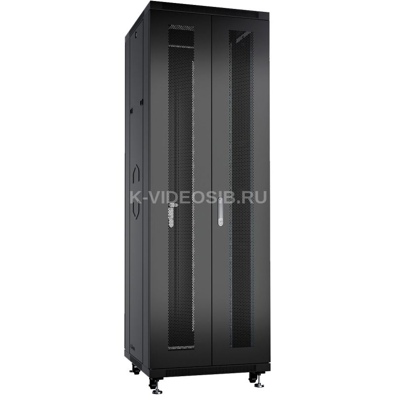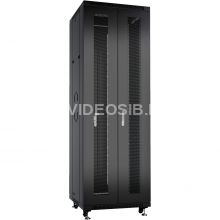 Шкаф комплектуется передними и задними двустворчатыми дверями с ригельным замком и съемными боковыми панелями. Передние и задние двери металлические с перфорацией.