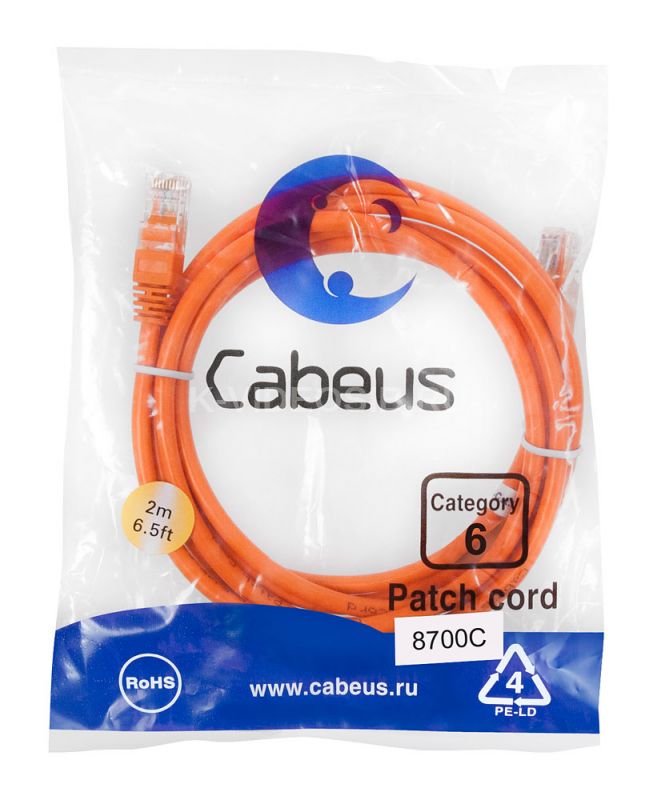 Описание Cabeus PC-UTP-RJ45-Cat.6-2m-OR