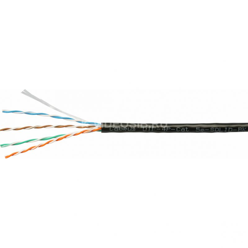Cabeus UTP-4P-Cat.5e-SOLID-BK Кабель витая пара UTP (U/UTP), категория 5e, 4 пары (24 AWG), одножильный, PVC нг(А)-LS, черный (305 м)