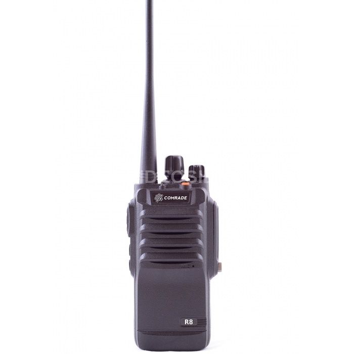 Профессиональная рация Comrade R8 – любительская радиостанция, выполненная в ударопрочном корпусе с защитой от воды и пыли, что позволяет использовать устройство в сложных условиях. Оснащена кнопками, которые можно программировать, подавителем шумов, индикатором низкого заряда аккумулятора. Преимущества рации Comrade R8