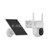 Поворотная Wi-Fi видеокамера с разрешением 4Мп, панорамным обзором, ИК подсветкой и LED диодами, AI-детекцией человека, детекцией звука и функцией патрулирования. Для установки вне помещений. Питание от солнечной панели.