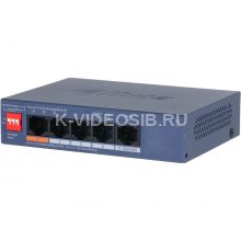 4-портовый гигабитный PoE коммутатор с функцией облачного управления Порты: 4 RJ45 10/100/1000Мбит/с (PoE/PoE+/Hi-PoE), 1 RJ45 10/100/1000Мбит/с (uplink); мощность PoE: порт 1 до 60Вт, порты 2~4 до 30Вт, суммарно до 60Вт; PoE watchdog, передача до 250м; питание: 53В(DC)