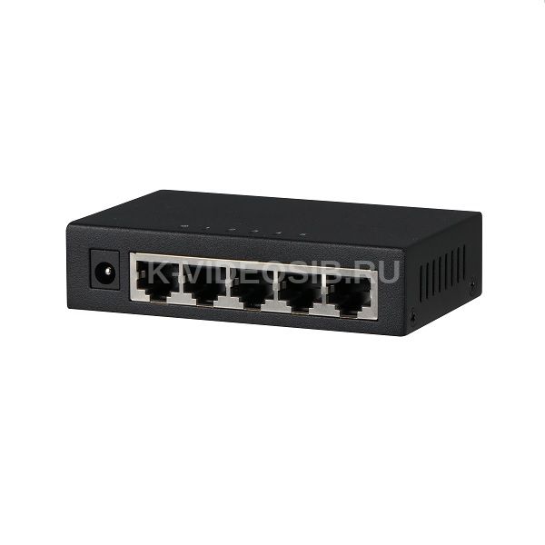 Dahua PFS3005-5GT - 5 портовый коммутатор неуправляемый. 5*10/100/1000 Base-Т. Питание: DC 5В. Размеры: 100х64х25 мм. Диапазон рабочих температур: от 0⁰С до + 40⁰С.
