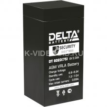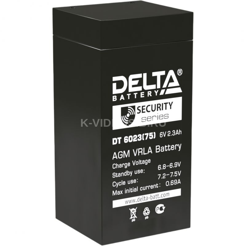 Герметизированный VRLA cвинцово-кислотный аккумулятор Delta DT 6023 (75) напряжением 6В и емкостью 2.3Ач изготовлен по технологии AGM (с микропористым заполнителем, пропитанным электролитом). Корпус изготовлен из негорючего ABS пластика. Срок службы аккумулятора рассчитан на 3-5 лет работы. Аккумулятор предназначен для работы в режиме постоянного подзаряда (т.н. буферный режим), обладает низким внутренним сопротивлением и саморазрядом.