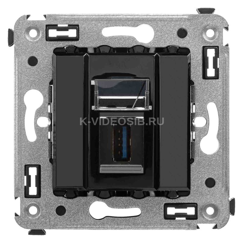 ДКС 4402303 USB 3.0 розетка одинарная в стену, тип А-А, Avanti, черный квадрат