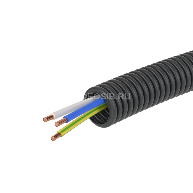 ДКС 7V71650 Электротруба ПНД гибкая гофр. д.16мм, цвет черный, с проводом ПуВ 3х2,5мм² РЭК "ГОСТ+", 50м