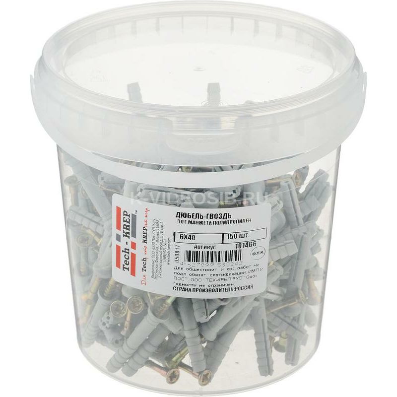 Дюбель-гвоздь 6х40 с потайной манжетой полипропилен (уп.150шт) ведро Tech-Krep 101466
