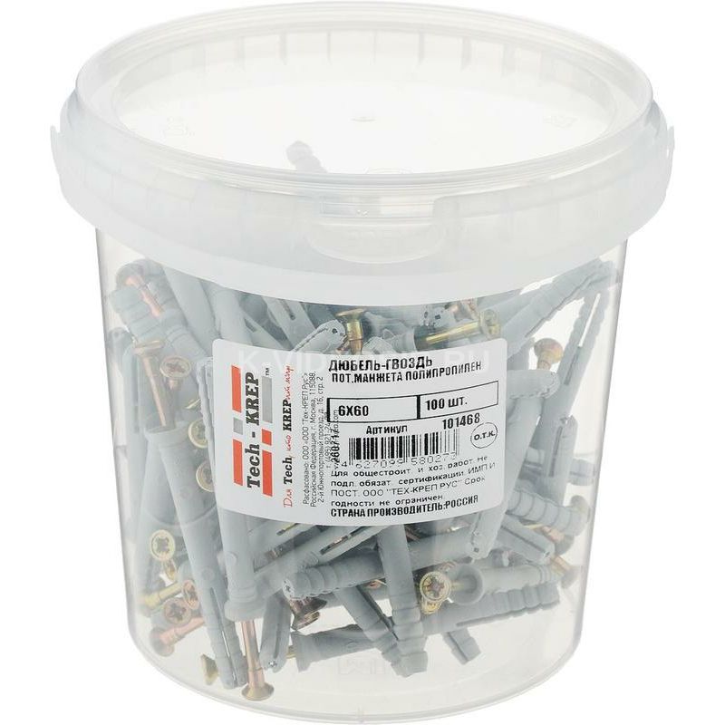 Дюбель-гвоздь 6х60 с потайной манжетой полипропилен (уп.100шт) ведро Tech-Krep 101468