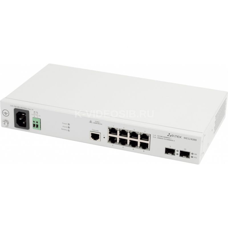 Ethernet-коммутатор MES2408B, 8 портов 10/100/1000BASE-T, 2 порта 100BASE-FX/1000BASE-X, L2,220В AC, 12В DС