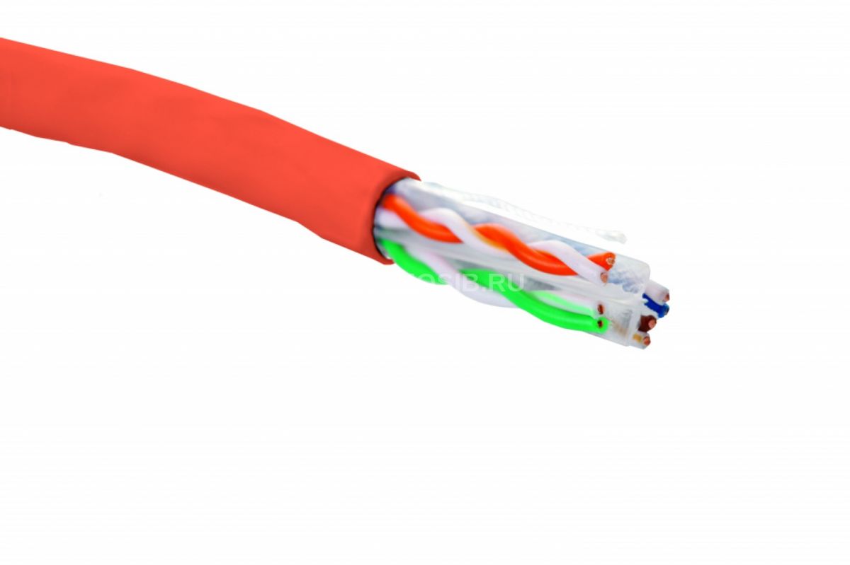 Кабель категории 6, U/UTP, 4 пары, 23 AWG, нг(A)-HF, внутренней прокладки, красный, коробка 305 м
