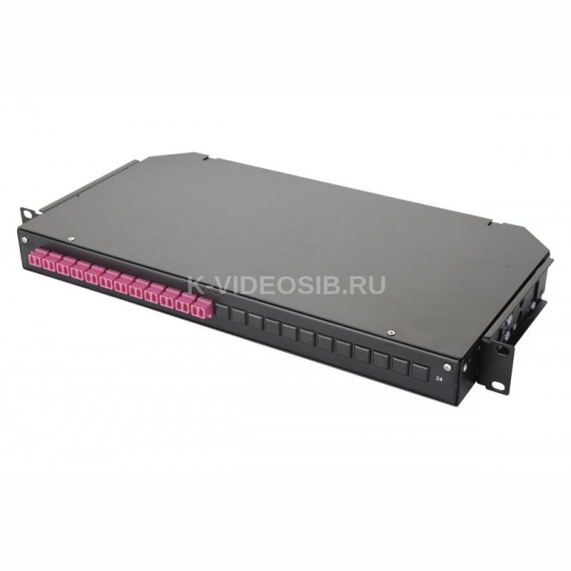 Оптическая панель Eurolan 47C-24-40-2L-24-11BL 19'' 1U фиксированная, корпус на 24 адаптера, 24 дуплекс LC адаптеров, OM4, цвет черый RAL 9005, со съёмной крышкой и маркировкой портов. Панели оптические 19” фиксированной конфигурации и слотовые обеспечивают ввод, размещение, крепление и хранение запасов станционных и линейных волоконнооптических кабелей, концевую заделку, соединение, переключение линейных и станционных кабелей с оптическими волокнами в сети связи общего пользования, в технологических сетях связи и сетях связи специального назначения, подключение контрольно-измерительной аппаратуры, маркировку линейных и станционных цепей.