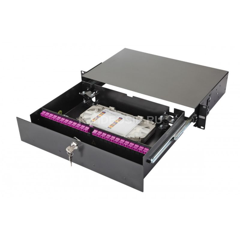 Выдвижная оптическая панель от Eurolan серии 47F-48 (артикул: 47F-48-40-2L-04-11BL). Корпус панели рассчитан на 48 адаптеров. Применяется для систем с большой плотностью портов, корпоративных систем, магистральных подсистем и решений рабочей группы. Обеспечивает: ввод, размещение, крепление и хранение запасов станционных и линейных волоконнооптических кабелей. Поставляется с передним одноточечным замком и двумя ключами. Боковые крепежные кронштейны для 19” направляющих позволяют задать два значения глубины установки.