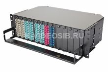 - Формат: 19-дюймовая конструкция высотой 3U (133 мм). - Корпус: Предназначен для установки 12 отдельных адаптеров. - Количество портов: Обеспечивает возможность подключения 72 дуплексных LC-разъёмов. - Категории волокон: Соответствует спецификациям многомодового волокна категории OM2.