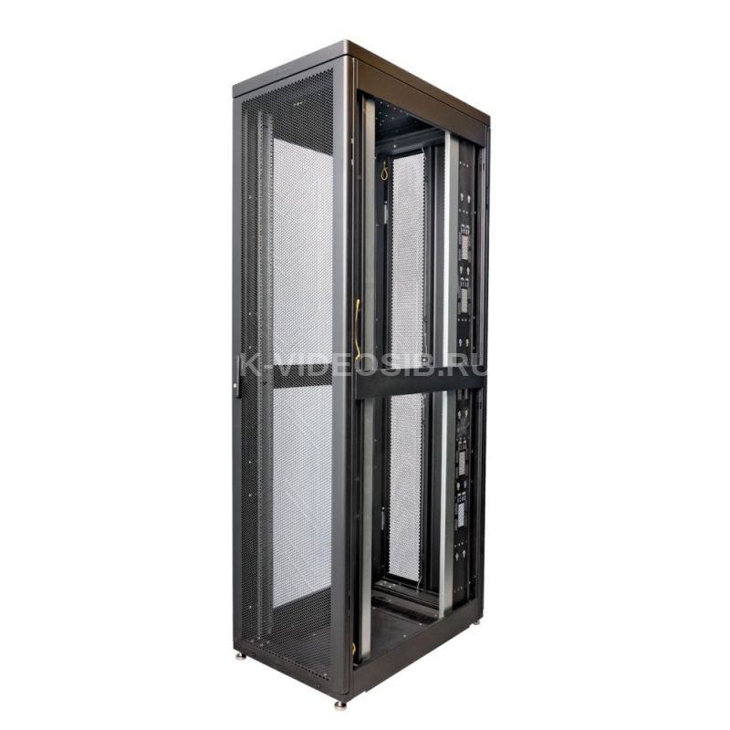 Eurolan 60F-42-6C-96BL - шкаф телекоммуникационный Eurolan Rackcenter D9000 42U 600 × 1200, передняя дверь перфорированная одностворчатая, задняя дверь перфорированная двустворчатая, без боковых стенок. Предназначен для размещения активного и пассивного телекоммуникационного оборудования, в том числе серверов и хранилищ данных, и для эксплуатации в специально отведенных помещениях. Две массивные сварные рамы, соединенные комплектом швеллеров, обеспечивают увеличенную жесткость конструкции. Крыша шкафа усилена двумя продольными ребрами жесткости с нижней стороны крыши. Поставка в собранном виде на палете. Максимальная статическая нагрузка 1500 кг. Высота шкафа 2044 мм, ширина шкафа 600 мм, глубина шкафа 1200 мм. Крыша - щеточные кабельные вводы, заглушенные отверстия под выламывание. Основание - закрытое, заглушенные отверстия под выламывание, съемная нижняя панель. Сейсмостоек. Высота 42U. Цвет - чёрный.
