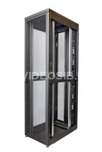 Eurolan 60F-48-6A-96BL - шкаф телекоммуникационный Eurolan Rackcenter D9000 48U 600 × 1000, передняя дверь перфорированная одностворчатая, задняя дверь перфорированная двустворчатая, без боковых стенок. Предназначен для размещения активного и пассивного телекоммуникационного оборудования, в том числе серверов и хранилищ данных, и для эксплуатации в специально отведенных помещениях. Две массивные сварные рамы, соединенные комплектом швеллеров, обеспечивают увеличенную жесткость конструкции. Крыша шкафа усилена двумя продольными ребрами жесткости с нижней стороны крыши. Поставка в собранном виде на палете. Максимальная статическая нагрузка 1500 кг. Высота шкафа 2320 мм, ширина шкафа 600 мм, глубина шкафа 1000 мм. Крыша - щеточные кабельные вводы, заглушенные отверстия под выламывание. Основание - закрытое, заглушенные отверстия под выламывание, съемная нижняя панель. Сейсмостоек. Высота 48U. Цвет - чёрный.