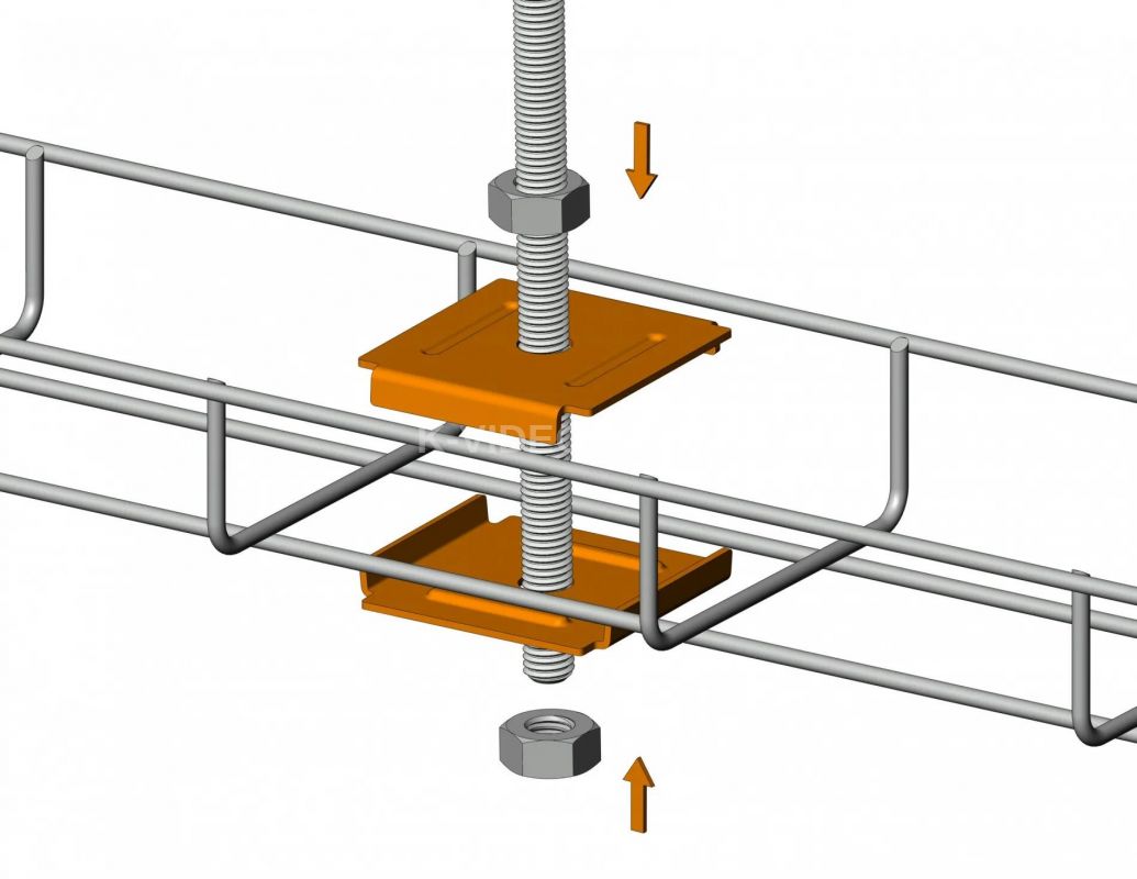 Фиксатор для подвеса проволочного лотка - это крепежный элемент, предназначенный для установки проволочного лотка на подвесную систему. Он совместим с различными типами шпилек (М6, М8 и М10) и позволяет быстро и просто закрепить лоток на необходимой высоте. Фиксатор обеспечивает надежное крепление лотка, предотвращая его смещение или деформацию, что гарантирует долговечность и безопасность всей подвесной системы.