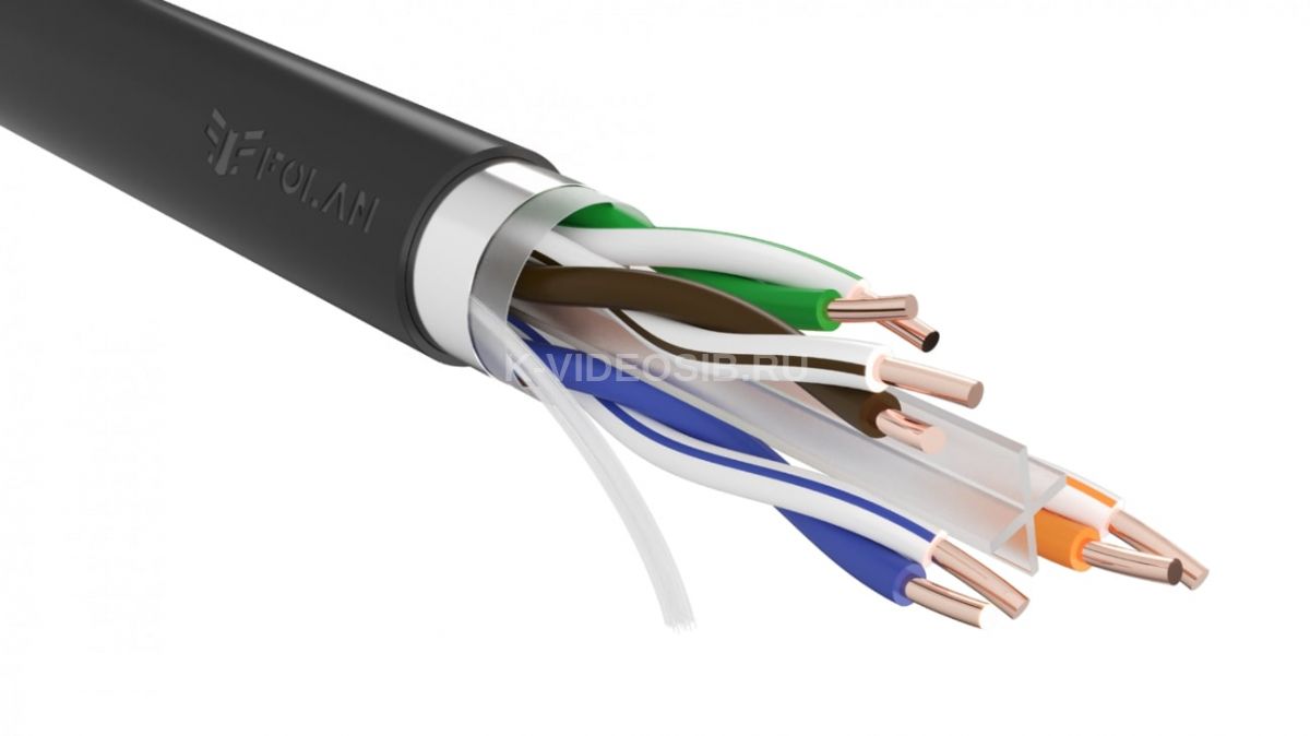 Кабель FOLAN F/UTP Cat 6 PE 4х2х0,57 для структурированных кабельных систем (каналы класса D) в соответствии с ИСО/МЭК 11801, для сетей широкополосного доступа, IP-систем. Для передачи данных на частоте до 100 МГц с рабочим напряжением до 145 В. Для наружной стационарной прокладки в сетях низкого напряжения и мощности (2.5 Gigabit Ethernet, Fast Ethernet, Ethernet, Ethernet plus и пр.). Соответствует требованиям ГОСТ Р ИСО 54429-2011, МЭК 61156-2 и ANSI/TIA/EIA-568-A. Поддерживает стандарты Power over Ethernet plus (PoE+).