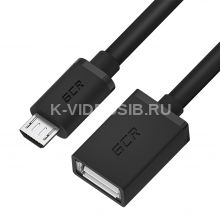 GCR Адаптер переходник OTG 0.5m USB, microB 5pin/AF, черный, морозостойкий GCR-53380