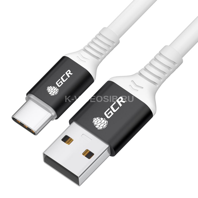 GCR Кабель 1.0m, Type-C POWER DELIVERY 60 W, 5A max, быстрая зарядка, белый, AL case черный, белый ПВХ GCR-53656