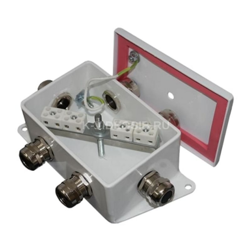 Корпус коробки целиком изготовлен из стали 2,5-3 мм. Имеет двойную защиту от коррозии (гальваническое покрытие и покраска). Крышка прижимается к корпусу через силиконовую прокладку. Винт крепления крышки снабжен уплотняющей тарельчатой шайбой с фторопластовым покрытием. Внутри корпуса коробки установлены керамические клеммные колодки, обеспечивающие соединение "под винт", и клемма заземления. В боковых стенках устанавливаются металлические кабельные вводы. Крепление коробки к элементам конструкций рекомендуется осуществлять на приварные пластины с применением гаек и винтов или с помощью саморезов и металлических дюбелей.