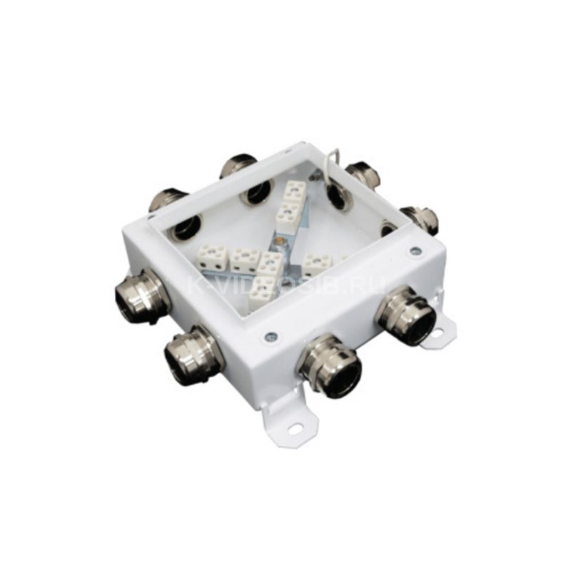 Корпус коробки целиком изготовлен из стали 2,5-3 мм. Имеет двойную защиту от коррозии (гальваническое покрытие и покраска). Крышка прижимается к корпусу через силиконовую прокладку. Винт крепления крышки снабжен уплотняющей тарельчатой шайбой с фторопластовым покрытием. Внутри корпуса коробки установлены керамические клеммные колодки, обеспечивающие соединение "под винт", и клемма заземления. В боковых стенках устанавливаются металлические кабельные вводы. Крепление коробки к элементам конструкций рекомендуется осуществлять на приварные пластины с применением гаек и винтов или с помощью саморезов и металлических дюбелей.