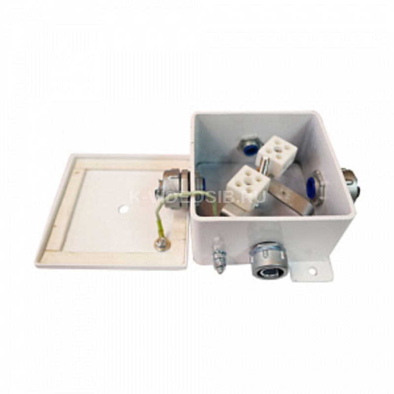 Корпус коробки целиком изготовлен из стали 2,5-3 мм. Имеет двойную защиту от коррозии (гальваническое покрытие и покраска). Крышка прижимается к корпусу через силиконовую прокладку. Винт крепления крышки снабжен уплотняющей тарельчатой шайбой с фторопластовым покрытием. Внутри корпуса коробки установлены керамические клеммные колодки, обеспечивающие соединение "под винт", и клемма заземления. В боковых стенках устанавливаются металлические кабельные вводы. Крепление коробки к элементам конструкций рекомендуется осуществлять на приварные пластины с применением гаек и винтов или с помощью саморезов и металлических дюбелей.