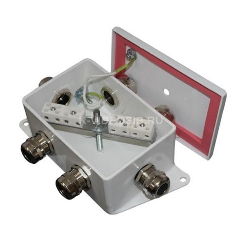 Корпус коробки целиком изготовлен из стали 2,5-3 мм. Имеет двойную защиту от коррозии (гальваническое покрытие и покраска). Крышка прижимается к корпусу через силиконовую прокладку. Винт крепления крышки снабжен уплотняющей тарельчатой шайбой с фторопластовым покрытием. Внутри корпуса коробки установлены керамические клеммные колодки, обеспечивающие соединение "под винт", и клемма заземления. В боковых стенках устанавливаются металлические кабельные вводы. Крепление коробки к элементам конструкций рекомендуется осуществлять на приварные пластины с применением гаек и винтов или с помощью саморезов и металлических дюбелей.