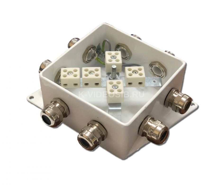 Корпус коробки целиком изготовлен из стали 2,5-3 мм. Имеет двойную защиту от коррозии (гальваническое покрытие и покраска). Крышка прижимается к корпусу через силиконовую прокладку. Винт крепления крышки снабжен уплотняющей тарельчатой шайбой с фторопластовым покрытием. Внутри корпуса коробки установлены керамические клеммные колодки, обеспечивающие соединение "под винт", и клемма заземления. В боковых стенках устанавливаются металлические кабельные вводы. Крепление коробки к элементам конструкций рекомендуется осуществлять на приварные пластины с применением гаек и винтов или с помощью саморезов и металлических дюбелей.