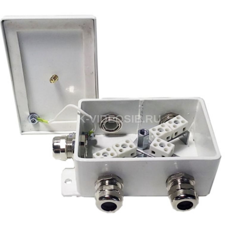Корпус коробки целиком изготовлен из стали 2,5-3 мм. Имеет двойную защиту от коррозии (гальваническое покрытие и покраска). Крышка прижимается к корпусу через силиконовую прокладку. Винт крепления крышки снабжен уплотняющей тарельчатой шайбой с фторопластовым покрытием. Внутри корпуса коробки установлены керамические клеммные колодки, обеспечивающие соединение "под винт", и клемма заземления. В боковых стенках устанавливаются металлические кабельные вводы. Крепление коробки к элементам конструкций рекомендуется осуществлять на приварные пластины с применением гаек и винтов или с помощью саморезов и металлических дюбелей.