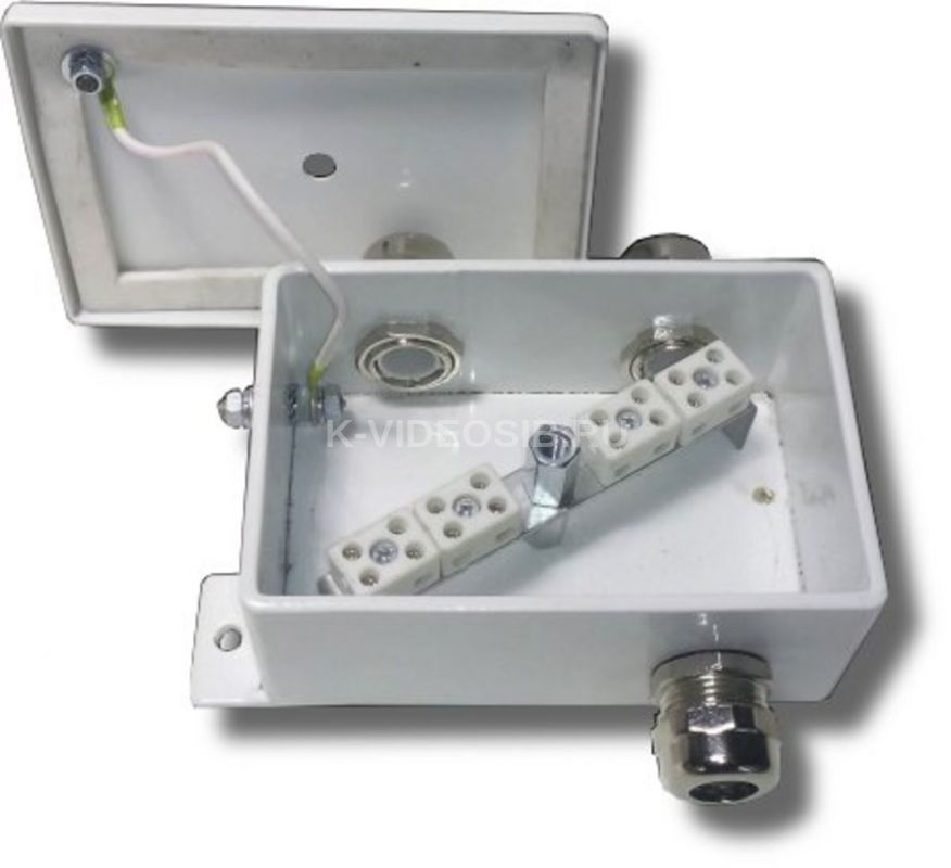 Корпус коробки целиком изготовлен из стали 2,5-3 мм. Имеет двойную защиту от коррозии ( гальваническое покрытие и покраска). Крышка прижимается к корпусу через силиконовую прокладку. Винт крепления крышки снабжен уплотняющей тарельчатой шайбой с фторопластовым покрытием. Внутри корпуса коробки установлены керамические клеммные колодки, обеспечивающие соединение "под винт", и клемма заземления. В боковых стенках устанавливаются металлические кабельные вводы. Крепление коробки к элементам конструкций рекомендуется осуществлять на приварные пластины с применением гаек и винтов или с помощью саморезов и металлических дюбелей.