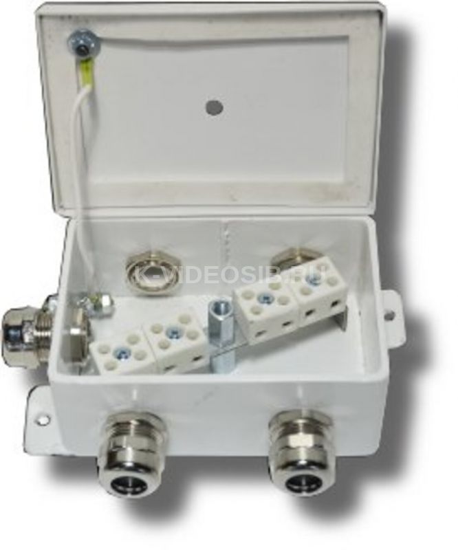 Корпус коробки целиком изготовлен из стали 2,5-3 мм. Имеет двойную защиту от коррозии (гальваническое покрытие и покраска). Крышка прижимается к корпусу через силиконовую прокладку. Винт крепления крышки снабжен уплотняющей тарельчатой шайбой с фторопластовым покрытием. Внутри корпуса коробки установлены керамические клеммные колодки, обеспечивающие соединение "под винт", и клемма заземления. В боковых стенках устанавливаются металлические кабельные вводы. Крепление коробки к элементам конструкций рекомендуется осуществлять на приварные пластины с применением гаек и винтов или с помощью саморезов и металлических дюбелей.