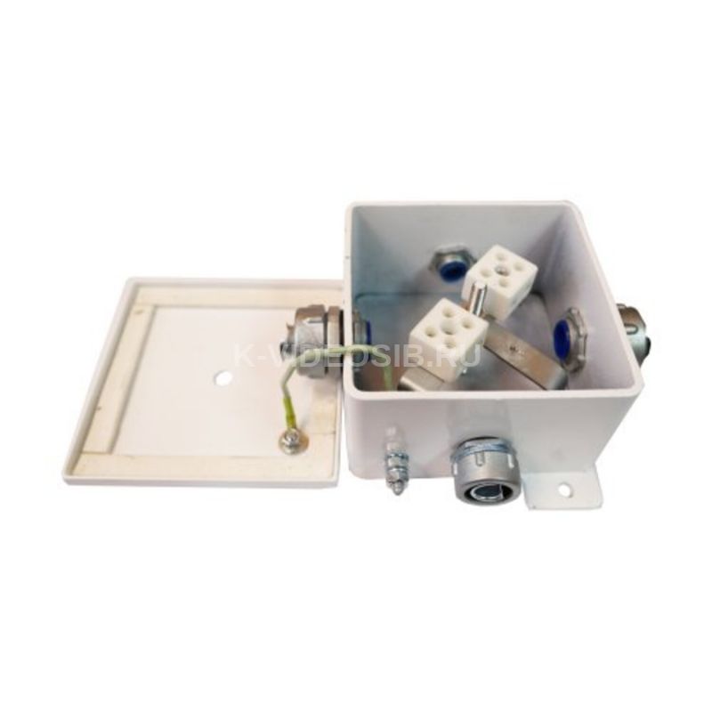 Корпус коробки целиком изготовлен из стали 2,5-3 мм. Имеет двойную защиту от коррозии (гальваническое покрытие и покраска). Крышка прижимается к корпусу через силиконовую прокладку. Винт крепления крышки снабжен уплотняющей тарельчатой шайбой с фторопластовым покрытием. Внутри корпуса коробки установлены керамические клеммные колодки, обеспечивающие соединение "под винт", и клемма заземления. В боковых стенках устанавливаются металлические кабельные вводы. Крепление коробки к элементам конструкций рекомендуется осуществлять на приварные пластины с применением гаек и винтов или с помощью саморезов и металлических дюбелей.