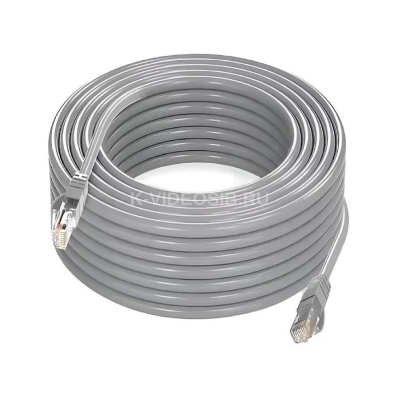 Патч-корд. Соединительный кабель UTP «витая пара» для передачи сигнала в локальной компьютерной сети. Длина 15 м. Категория 5е. Омедненный алюминий (CCA), многожильный. RJ45 штекеры, литой обжим, защита защелки разъема. Контакты разъемов: медь, напыление золото. Цвет: серый.