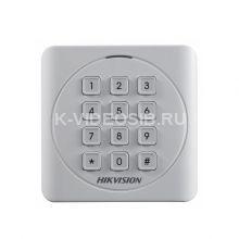 Hikvision DS-K1801EK - считыватель EM карт. Частота считывания 125КГц; Дальность считывания: 30-50 мм. Поддержка протокола Wiegand (W26/W34). Питание DC12В; ≤1.6Вт; Рабочие условия -40 °C...+70°C. Защита IP65. Размер 87x87x13.3мм. Материал корпуса пластик.