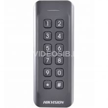 Считыватель карт Mifare Hikvision DS-K1802MK предназначен для работы в составе системы контроля доступа, поставляется в корпусе, защищенном от влаги и пыли согласно требованиям стандарта IP65. Дистанция считывания — до 50 мм, рабочая частота — 13.56 МГц, стандарт — ISO 14443-A, интерфейс — Wiegand 26/34. Считыватель базируется на 8-битном процессоре, оснащен механической клавиатурой на 12 клавиш, LED индикатором и бипером (сеть, питание, разрешение/запрет доступа). Питание — DC 12 В. В режиме максимальных нагрузок устройство потребляет не более 2 Вт. Габариты — 115.9×43.3×17.0 мм. Тип монтажа — накладной. Гарантия — 3 года.