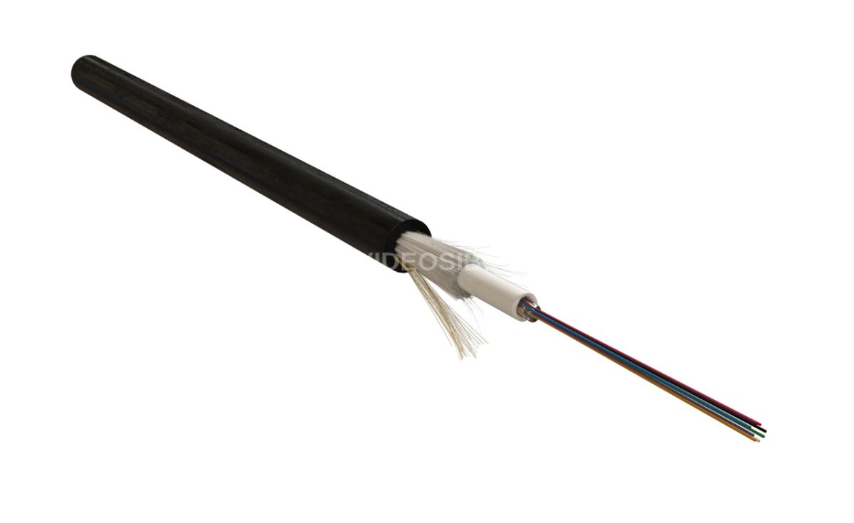 Конструкция: Кабель выполнен в защитной оболочке из PE и армирован стекловолокном, что улучшает его прочность и защитные свойства в условиях жесткой внешней среды. Волокна помещены в оптический модуль с гидрофобным гелем (loose tube), что защищает их от влаги и внешних повреждений, обеспечивая надежную и долговечную эксплуатацию.
