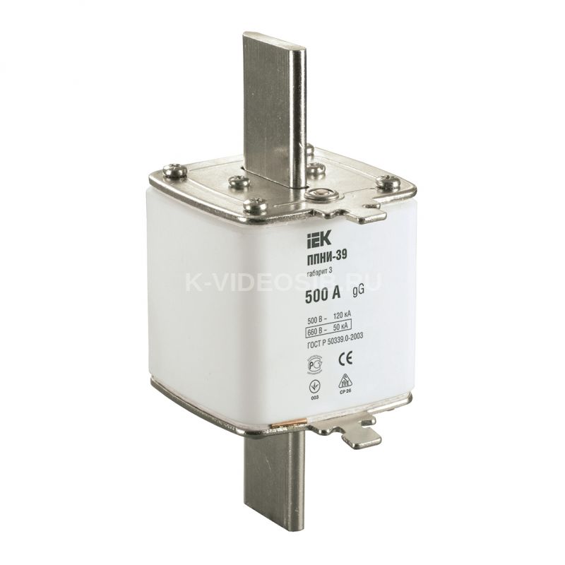 Номин ток, А 500 Конструктивный размер Типоразмер 3 (NH3) Категория применения gL/gG (для защиты кабелей и распределительных устройств от к.з. и перегрузки) Номин раб напряжение, В 690 Степень защиты - IP EV006404 Тип индикатора срабатывания Верхний индикатор срабатывания Тип напряжения Переменный (AC) Климатическое исполнение IEK_V0000009 Номин частота, Гц 50 Номин отключающая способность, кА -