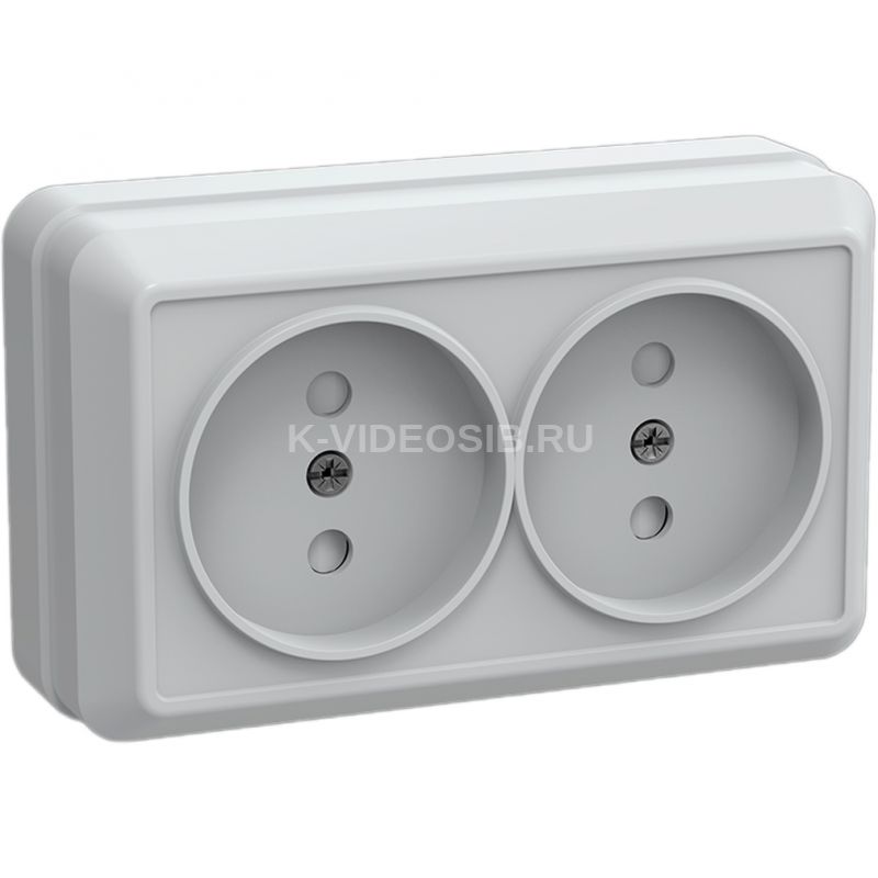 РСш22-2-ОБ Розетка 2местн. без з/к с защ.штор.10А откр.уст. ОКТАВА (белый) IEK ERO23-K01-10-DC.