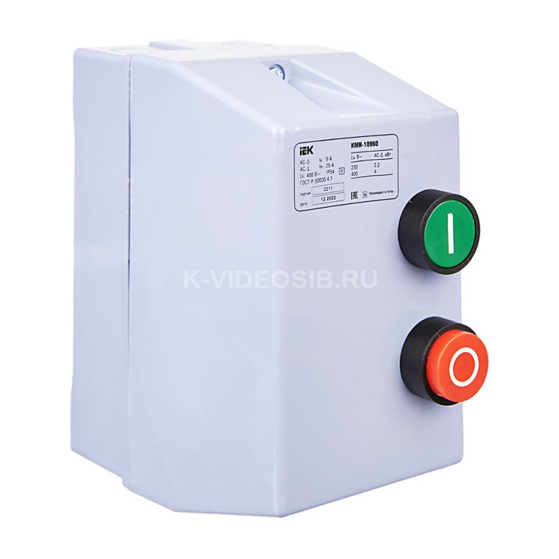 Контакторы КМИ в сборе с электротепловым реле в защитной оболочке являются комплектным устройством, состоящим из малогабаритного контактора КМИ, теплового реле РТИ, оболочки с сальниками и кнопок управления. Предназначены для дистанционного пуска непосредственным подключением к сети и остановки трехфазных асинхронных электродвигателей с короткозамкнутым ротором на напряжение переменного тока до 400 В, а также для защиты электродвигателей от перегрузок недопустимой продолжительности и сверхтоков, возникающих при обрыве одной из фаз. При применении контакторов КМИ 10910+КМИ 23211 используется пластиковая оболочка, контакторов КМИ 34012+КМИ 49512 - металлическая оболочка.