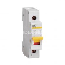 Выключатель нагрузки (мини-рубильник) ВН-32 1Р 63А ИЭК служит для включения, проведения и отключения номинального тока в нормальных условиях эксплуатации, проведения тока в аварийных режимах, например, при коротком замыкании, а также для выполнения функций разъединения.