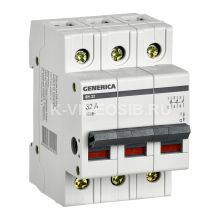Выключатель нагрузки (мини-рубильник) ВН-32 3Р 32А GENERICA служит для включения, проведения и отключения номинального тока в нормальных условиях эксплуатации, проведения тока в аварийных режимах, например, при коротком замыкании, а также для выполнения функций разъединения.