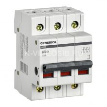Выключатель нагрузки (мини-рубильник) ВН-32 3Р 100А GENERICA служит для включения, проведения и отключения номинального тока в нормальных условиях эксплуатации, проведения тока в аварийных режимах, например, при коротком замыкании, а также для выполнения функций разъединения.