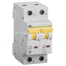 KARAT Автоматический выключатель ВА47-60M 2P C 25А 6кА IEK MVA31-2-025-C. Выключатели ВА47-60М выполняют функции автоматического отключения электроустановки при появлении сверхтоков и оперативного управления участками электрических цепей. Устройства прекрасно подходят для применения в групповых щитках (квартирные и этажные), а также в учетно-распределительных щитах административных и жилых зданий.