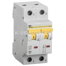 KARAT Автоматический выключатель ВА47-60M 2P C 32А 6кА IEK MVA31-2-032-C. Выключатели ВА47-60М выполняют функции автоматического отключения электроустановки при появлении сверхтоков и оперативного управления участками электрических цепей. Устройства прекрасно подходят для применения в групповых щитках (квартирные и этажные), а также в учетно-распределительных щитах административных и жилых зданий.