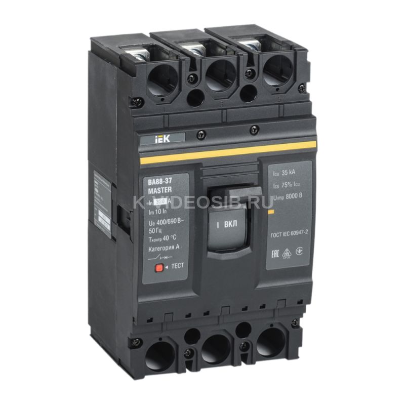 Автоматический выключатель в литом корпусе ВА88 MASTER предназначен для защиты электрических сетей от токов короткого замыкания, токов перегрузки, недопустимых снижений напряжения, а также для проведения тока в нормальном режиме. Автоматические выключатели производятся в 5 типоразмерах, оснащены термомагнитным расцепителем на токи от 16 до 800А и электронным расцепителем на токи от 125 до 800А. Рабочее напряжение 400/690 В. Конструкция автоматического выключателя предусматривает возможность самостоятельной установки дополнительных устройств на объекте заказчика.