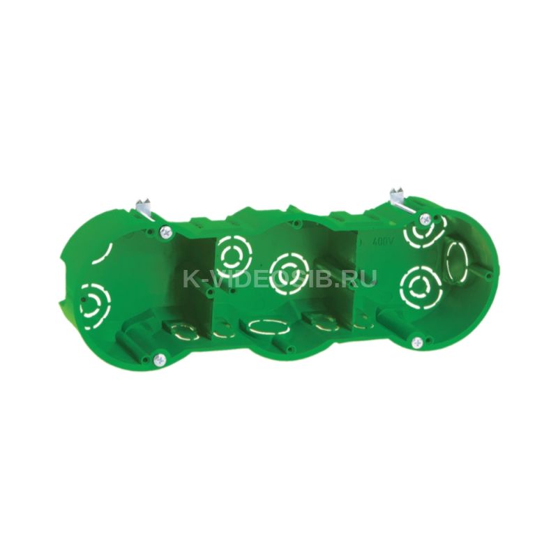 Установочные и распределительные коробки данной серии предназначены для монтажа в сплошные кирпичные или бетонные стены различных электроустановочных изделий: розеток, выключателей, диммеров. Используя крышку, изделия можно применять в качестве распаячной (разветвительной) коробки для развода кабеля и проводов. Материал изготовления: полистирол. Материал коробок является безгалогенным («HF» — halogen-free). Степень защиты: IP20. Температура эксплуатации: -15...+60. Цвет: черный. Количество вводов: 18 - D=20мм. Количество мест: 3. Размер: 212х70х45мм.