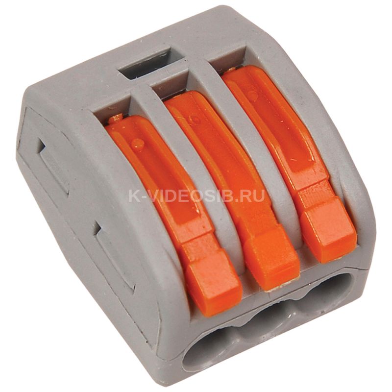 Строительно-монтажная клемма СМК 222-413 (4 штуки/упаковка) IEK UKZ-004-413. Количество подключаемых проводников - 3; место соединения - сбоку (поперечное); номинальное поперечное сечение - 4,0 мм²; сечение многожильного провода без наконечника - 0,08-4,0 мм²; сечение одножильного жёсткого провода - 0,08-2,5 мм². Строительно-монтажная клемма серии 222 предназначена для соединения одножильных и многожильных медных проводников без использования инструмента в электрических сетях переменного и постоянного тока с возможностью многоразового использования.